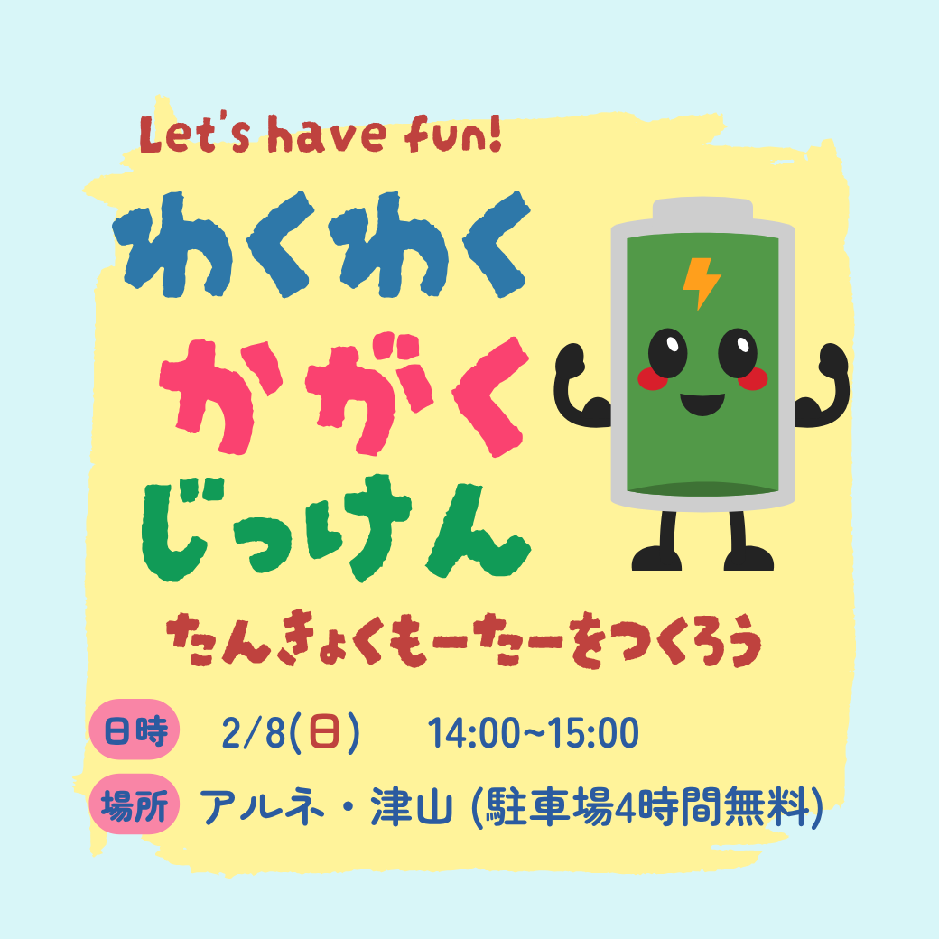 じっけんを通して、ふしぎな世界に触れてみよう【わくわく科学実験】単極モーターを作ろう(2/8)2月8日(日)500円14:00~15:00アルネ・津山4階 地域交流センター -